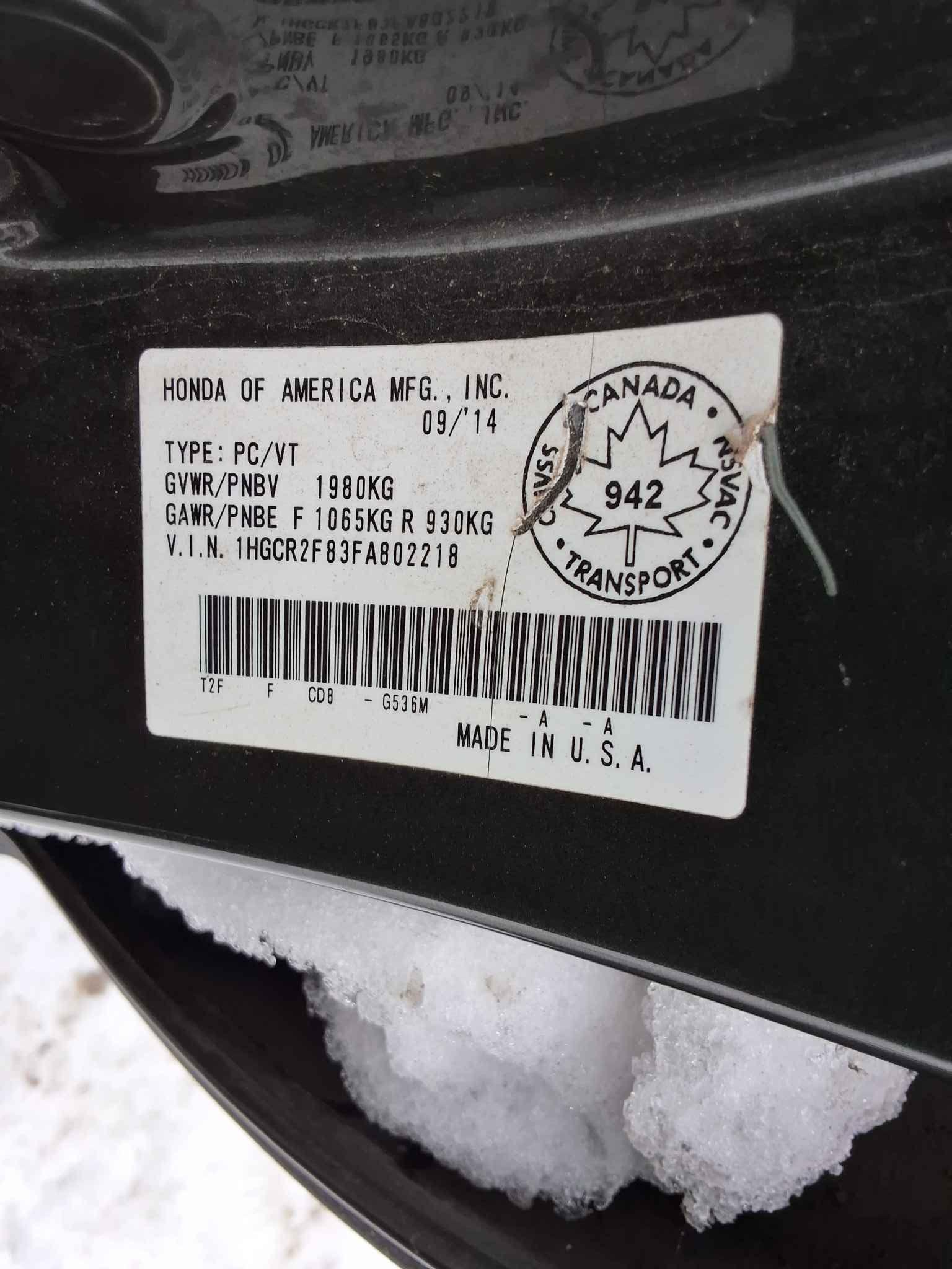 1HGCR2F83FA******