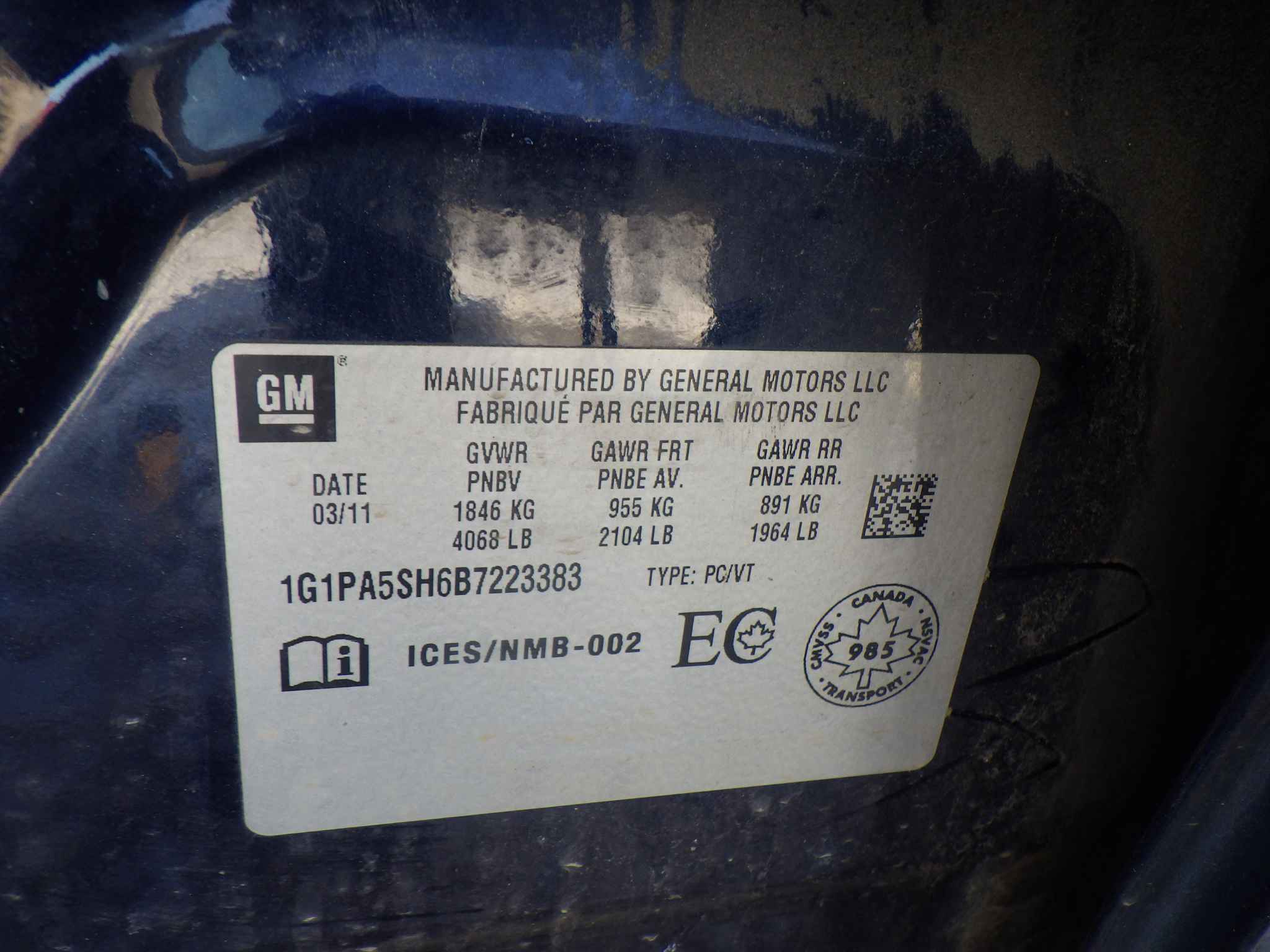 1G1PA5SH6B7******