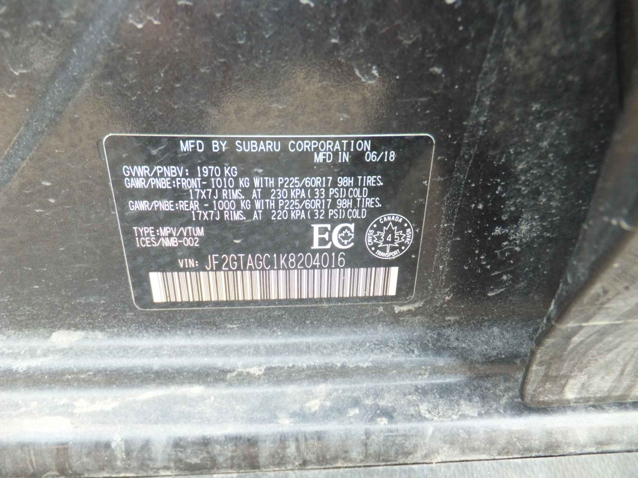 JF2GTAGC1K8******