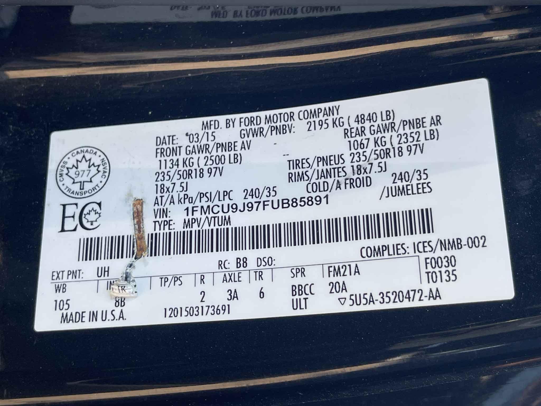 1FMCU9J97FU******