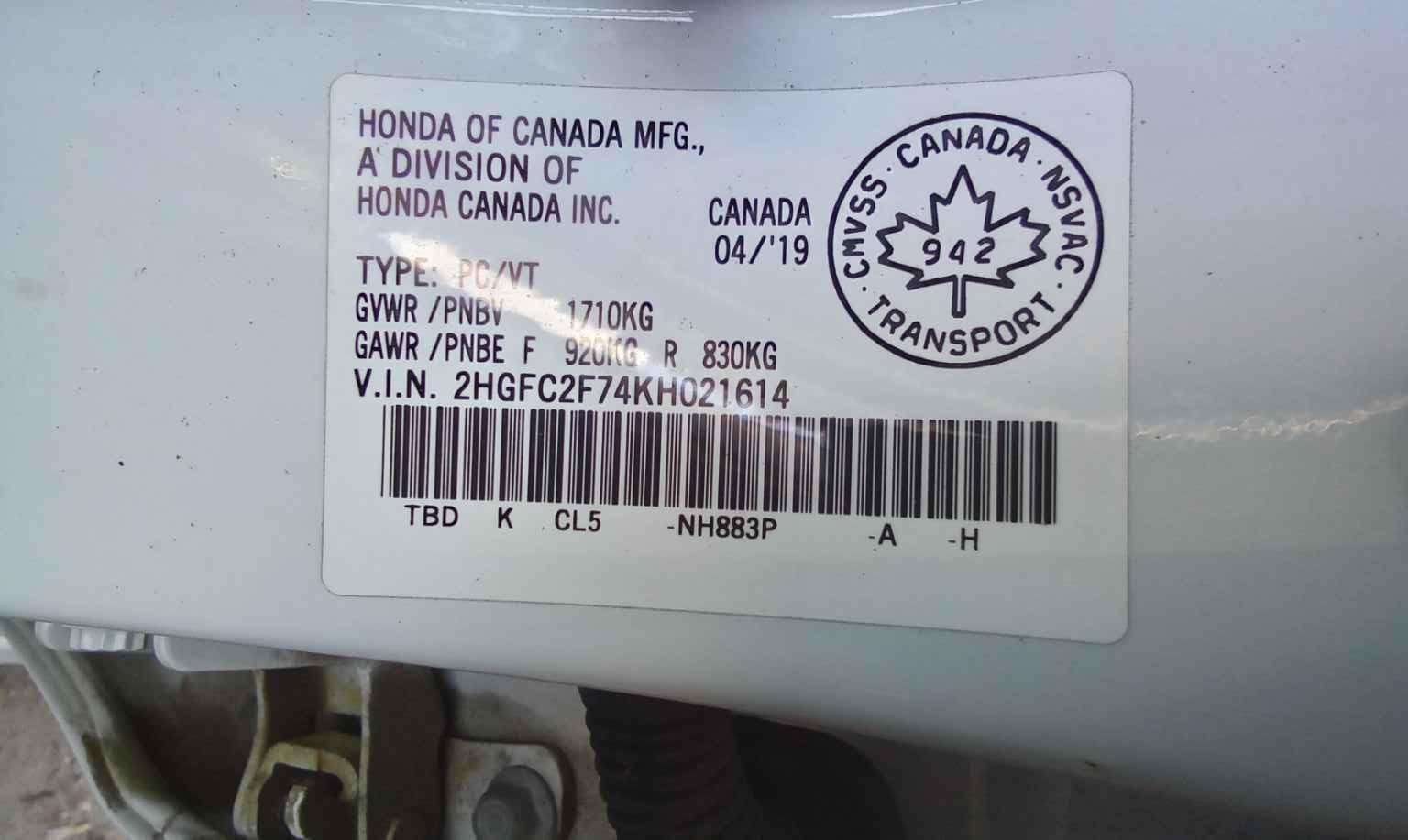 2HGFC2F74KH******