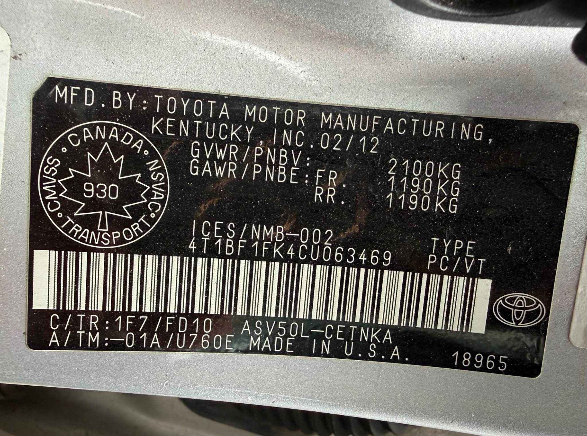 4T1BF1FK4CU******