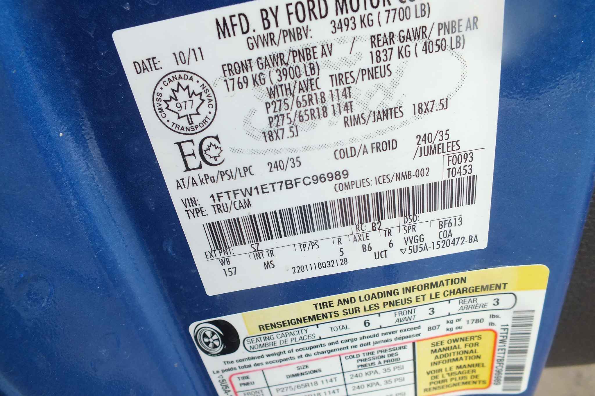 1FTFW1ET7BF******