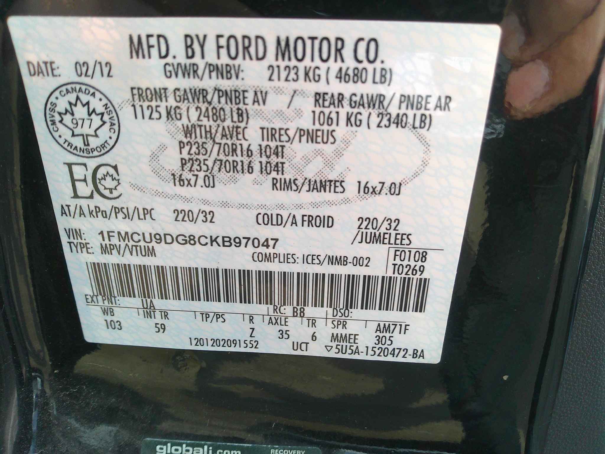 1FMCU9DG8CK******