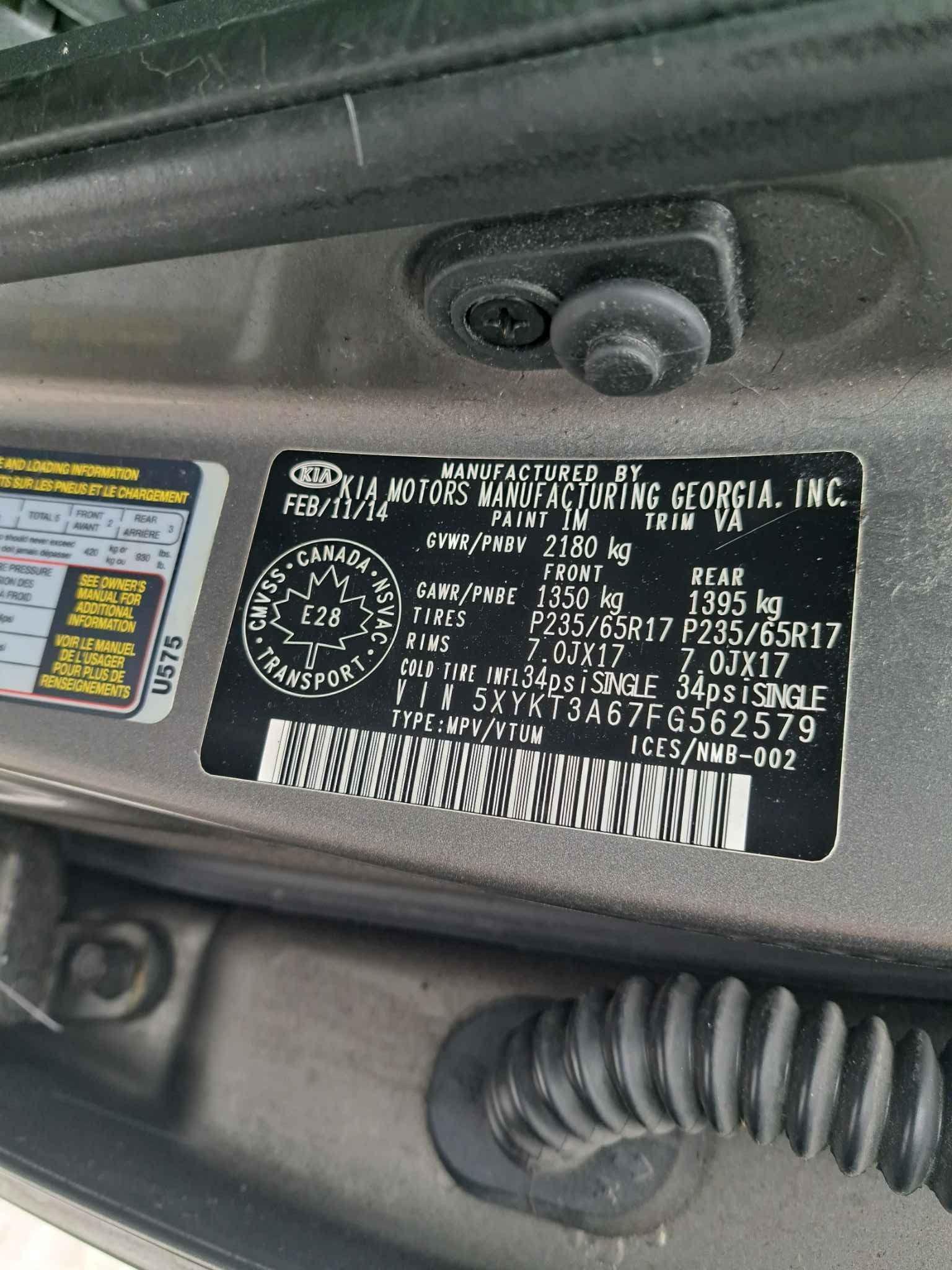 5XYKT3A67FG******