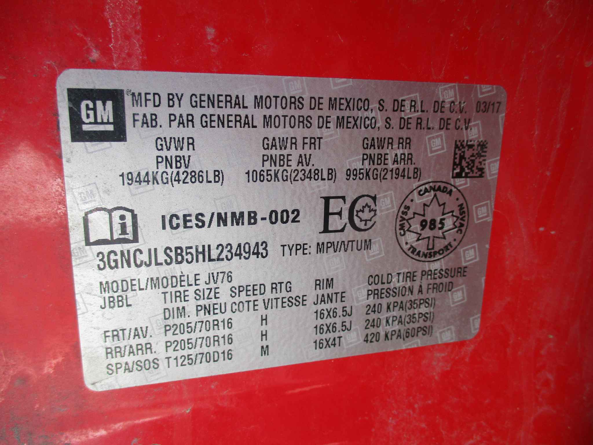 3GNCJLSB5HL******