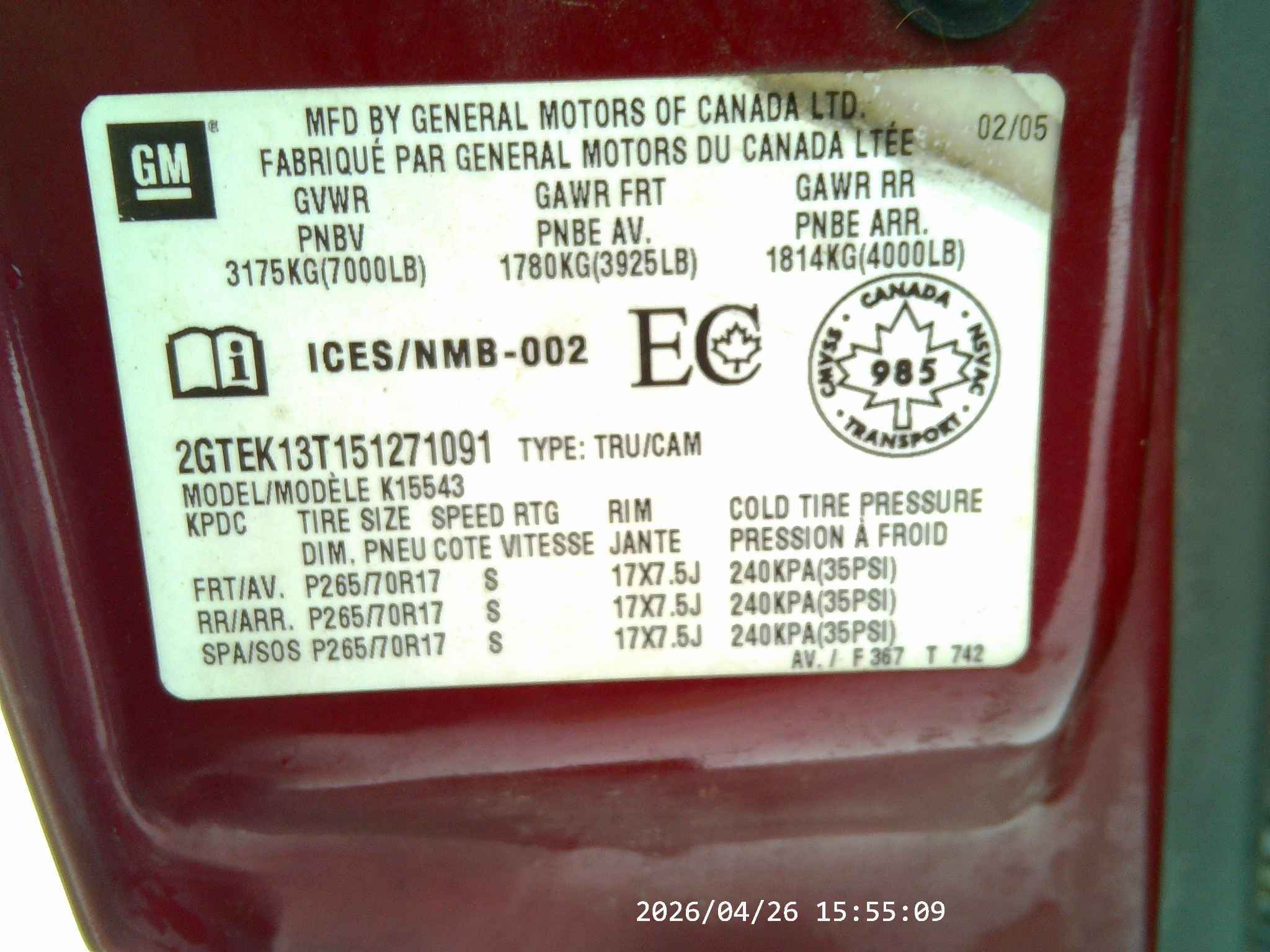 2GTEK13T151******