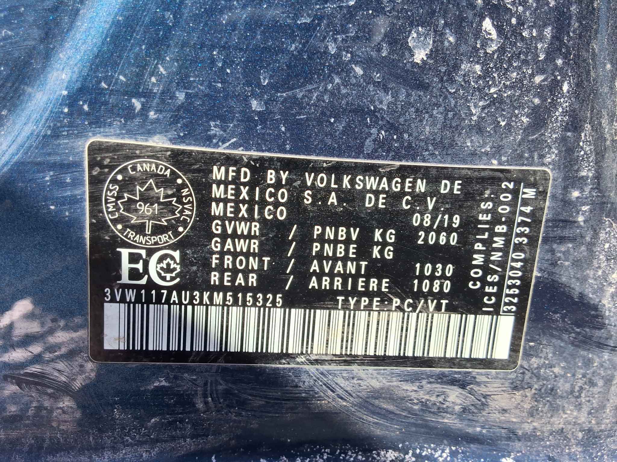 3VW117AU3KM******