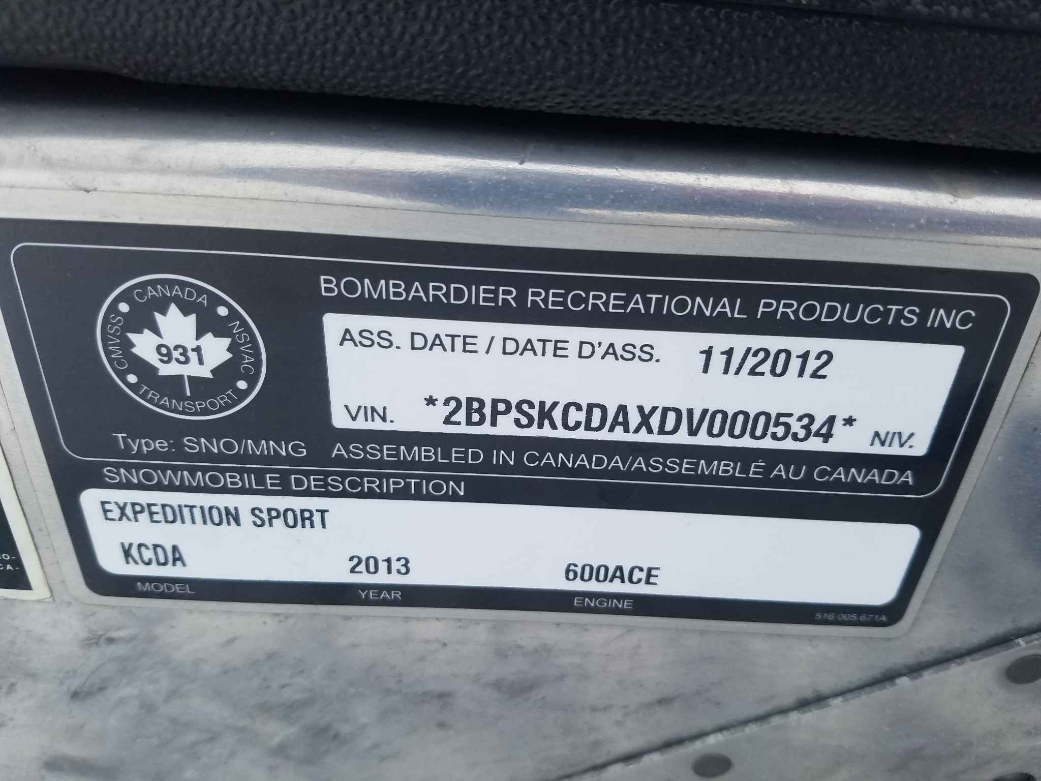2013 Snowmobile Skidoo Brp Expedition