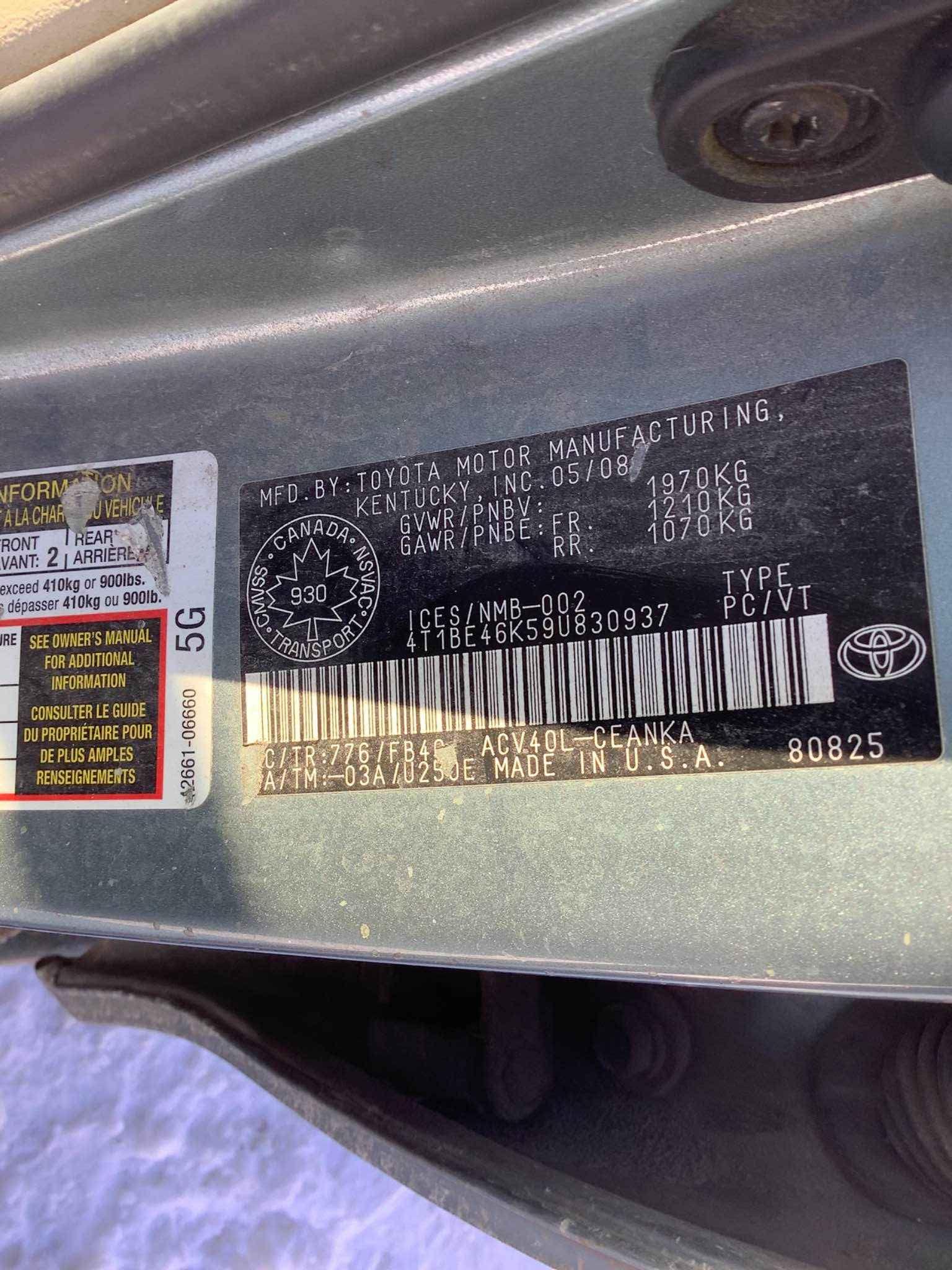 4T1BE46K59U******