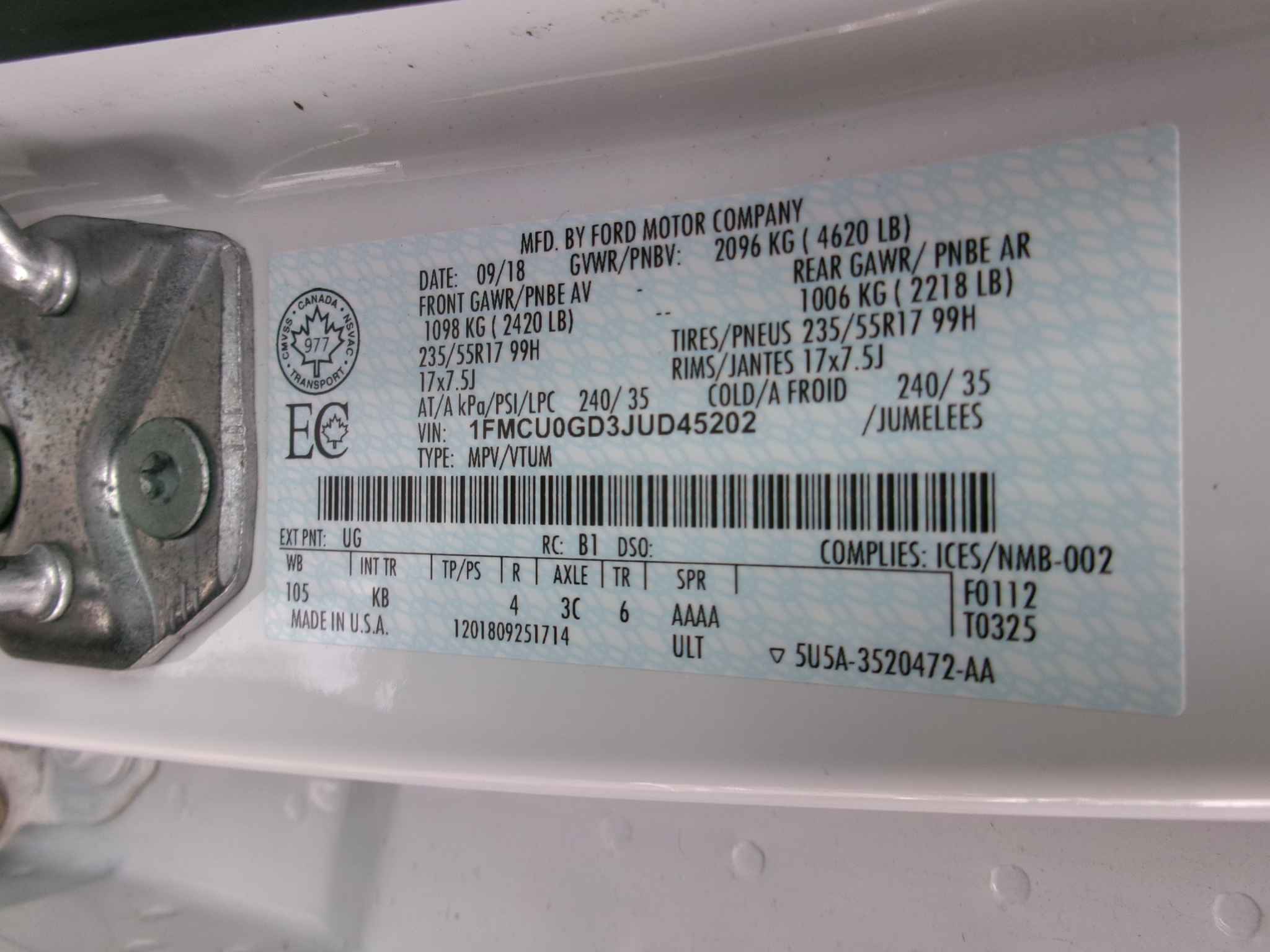 1FMCU0GD3JU******