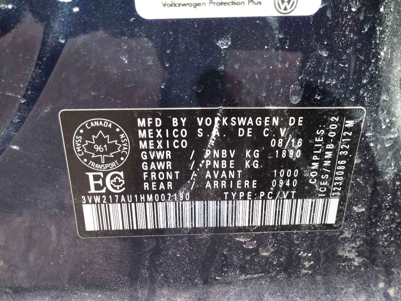 3VW217AU1HM******