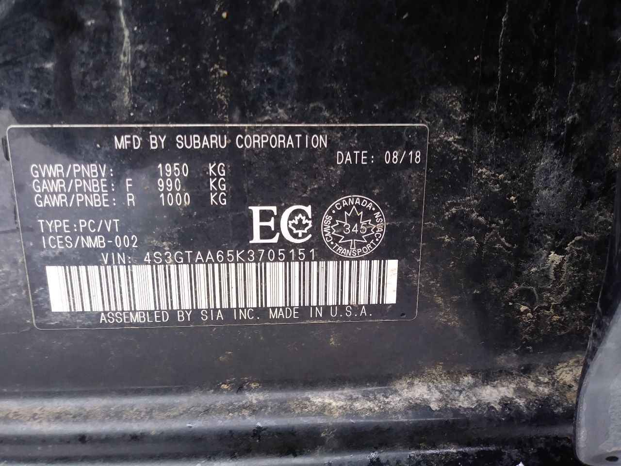 4S3GTAA65K3******