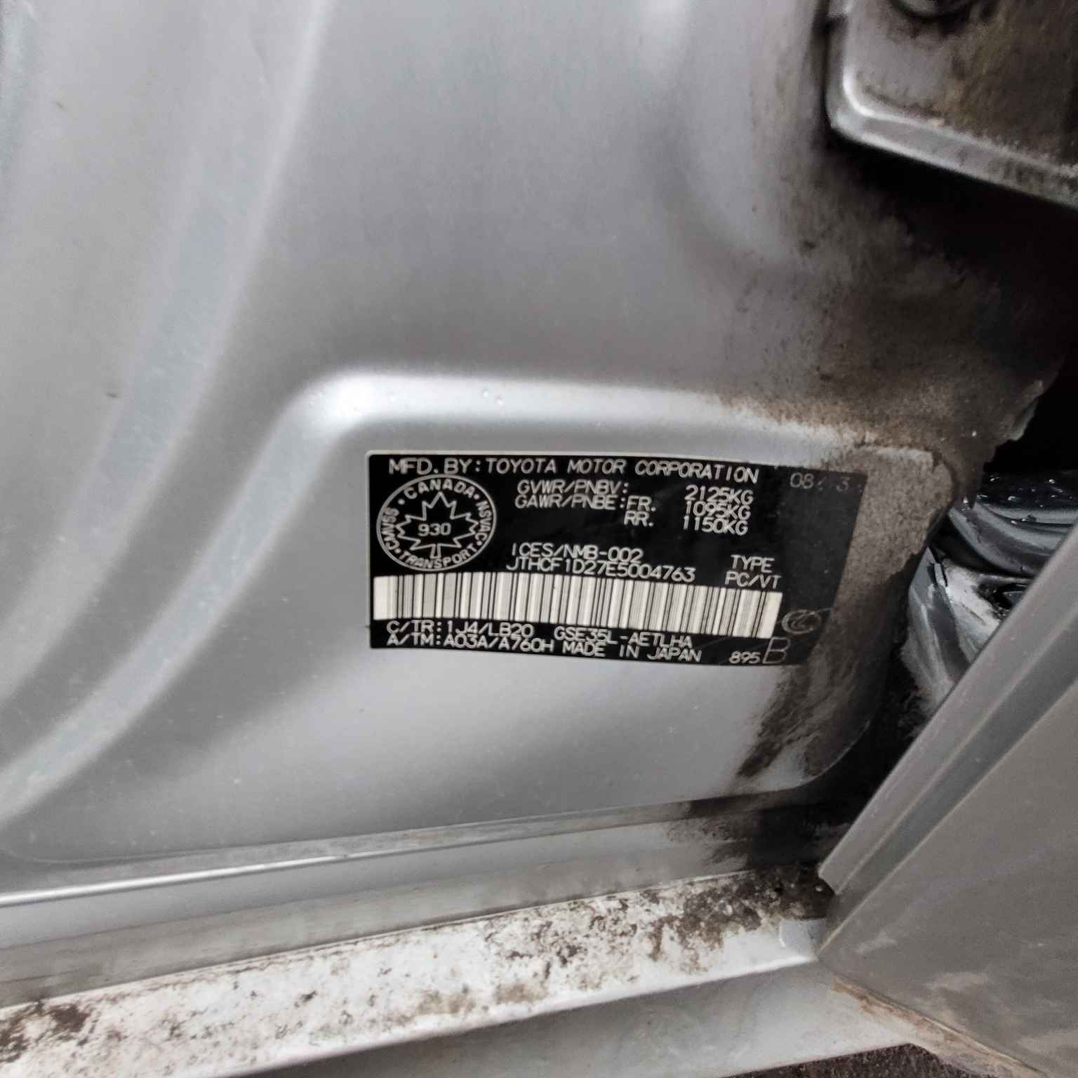 JTHCF1D27E5******