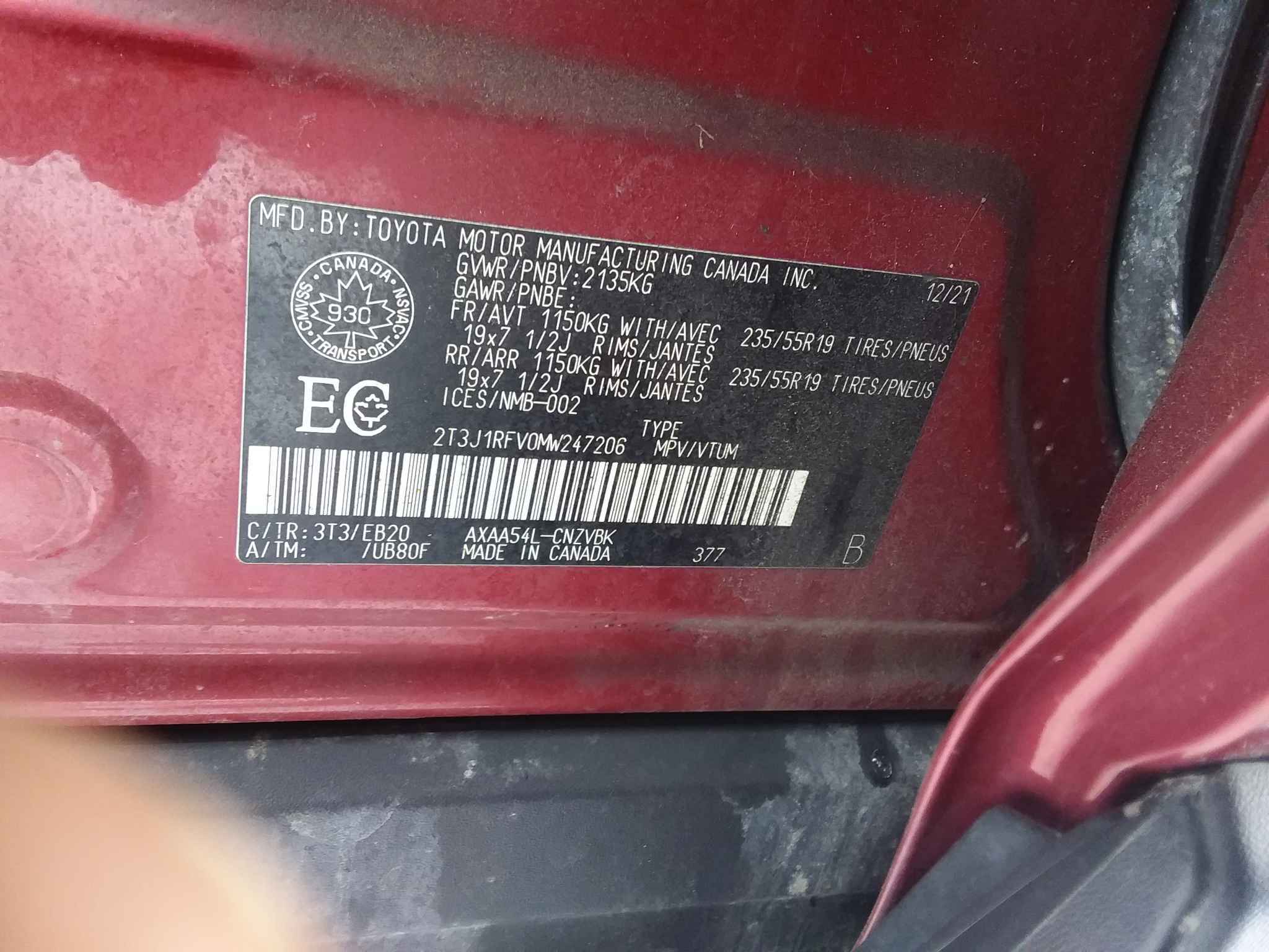 2T3J1RFV0MW******