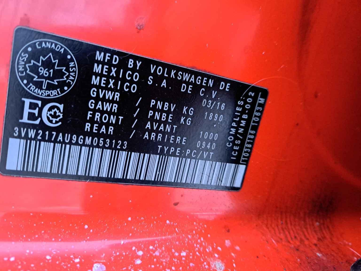 3VW217AU9GM******