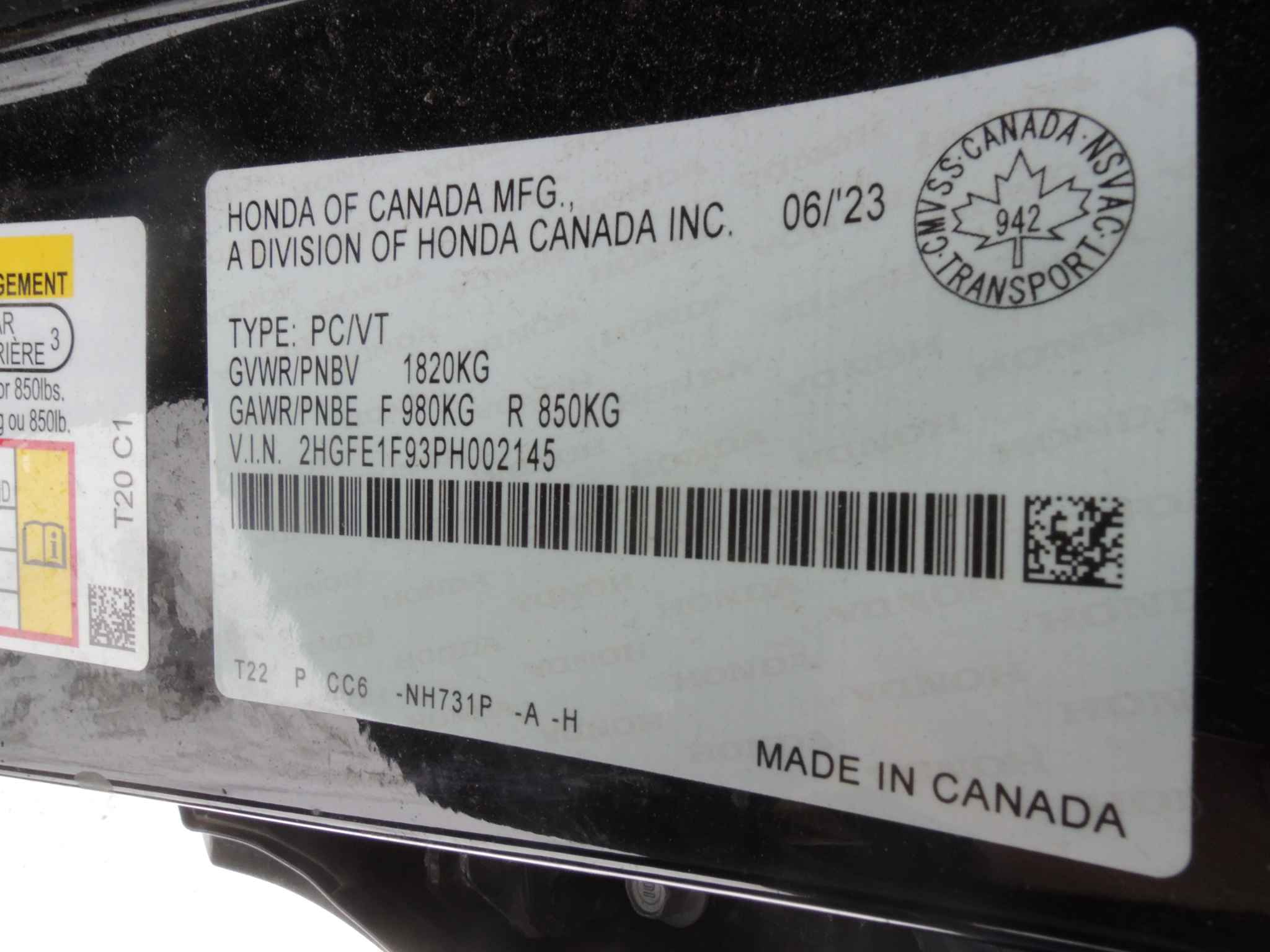 2HGFE1F93PH******