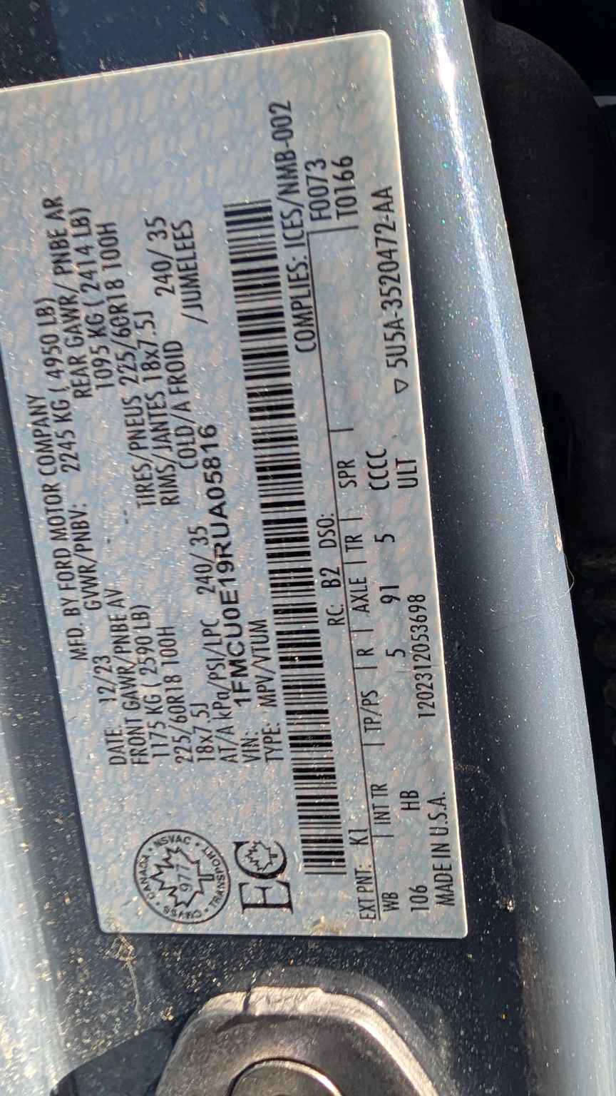 1FMCU0E19RU******