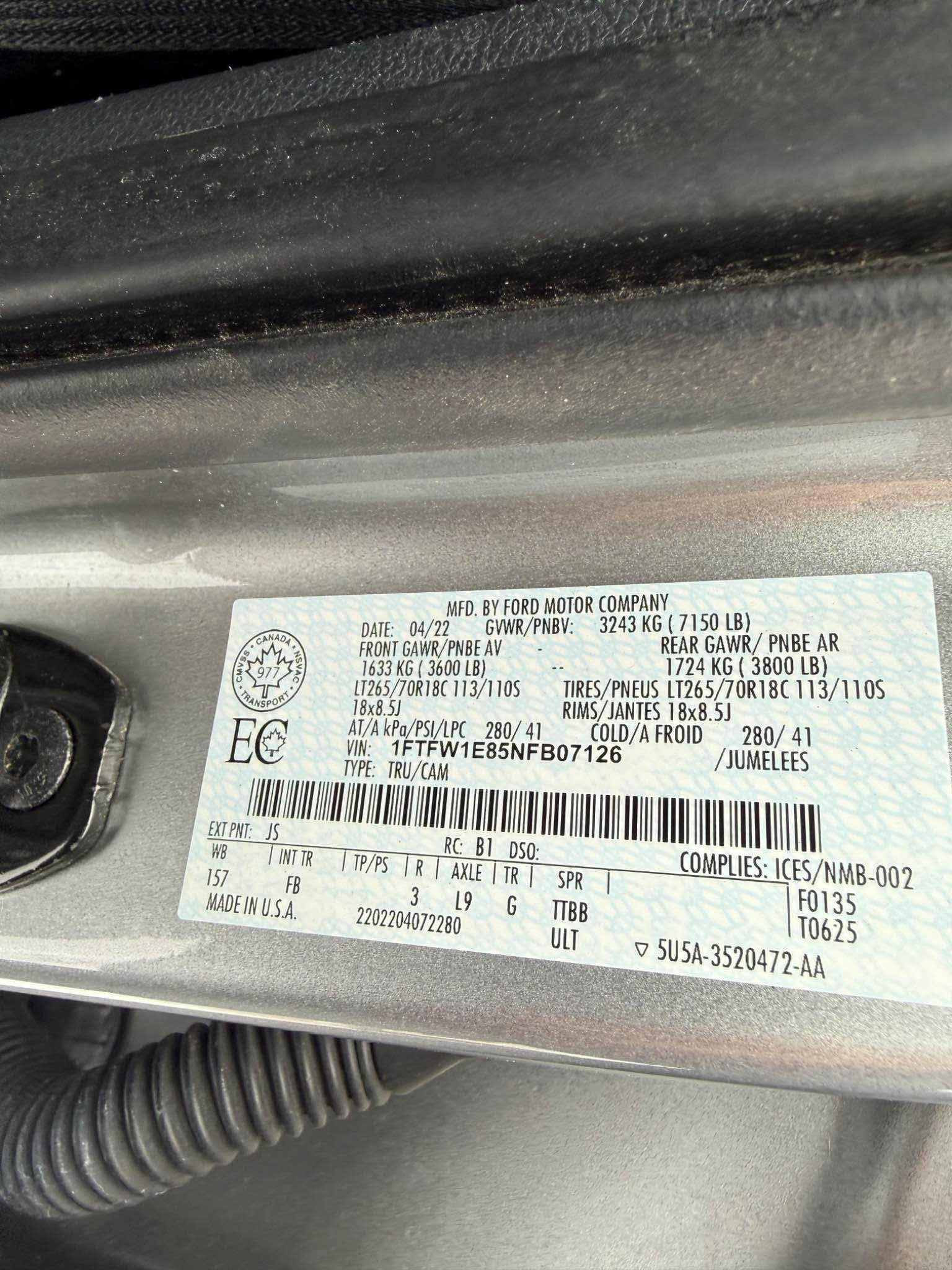 1FTFW1E85NF******