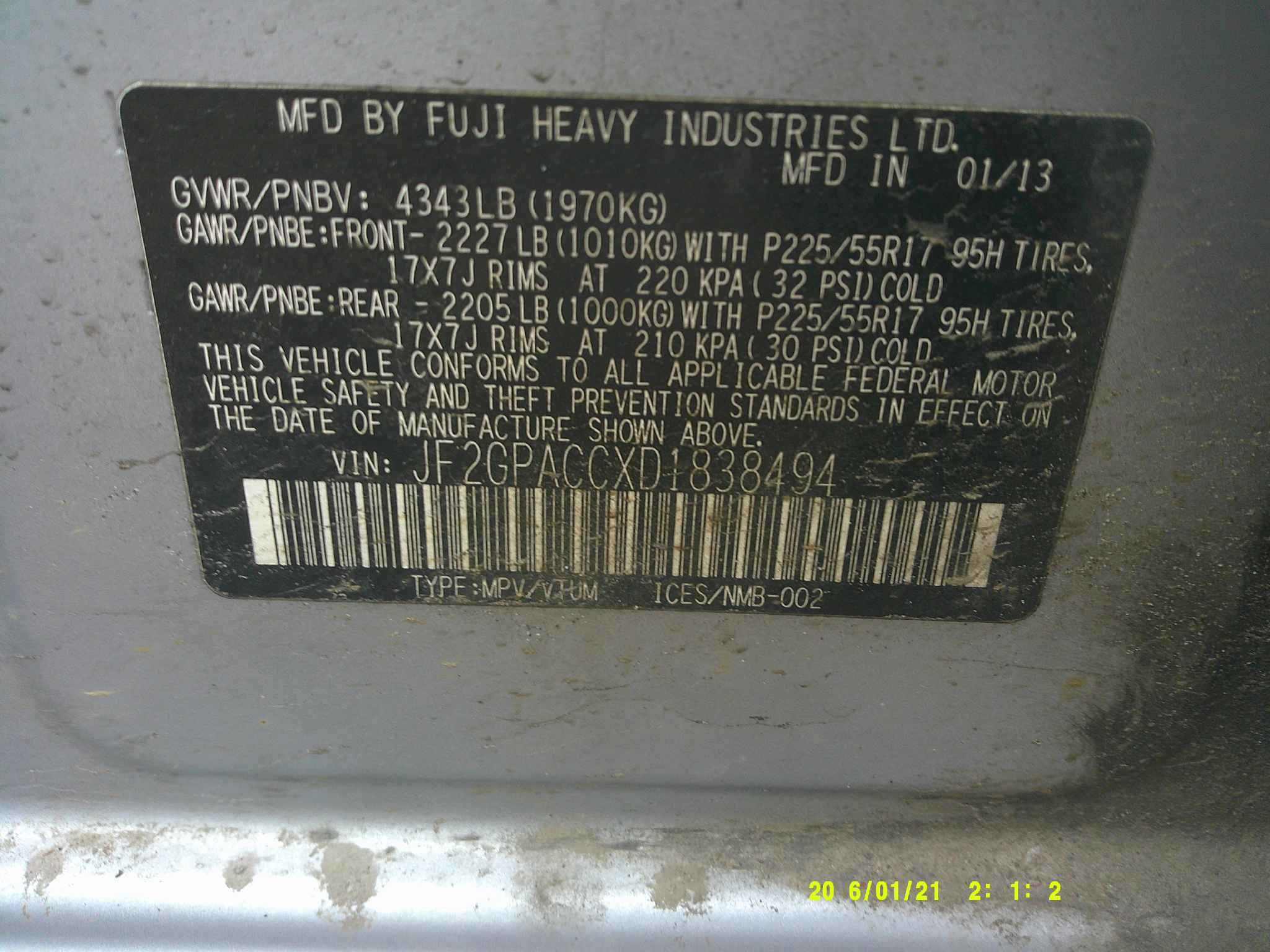 JF2GPACCXD1******